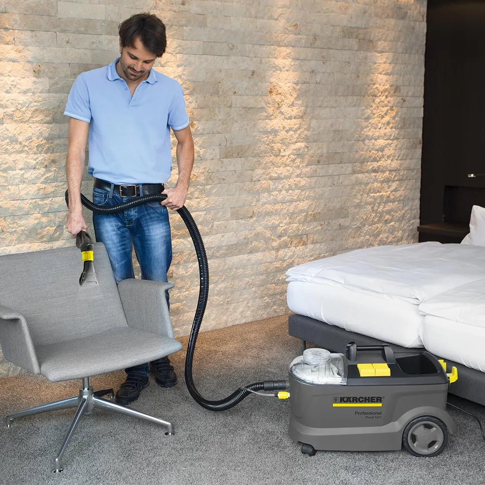 استمتع بنظافة فندقية لأثاثك مع كلين تاتش نأتيك بأقوى جهاز غسيل (Karcher Puzzi 10/1) إلى باب منزلك مع باقات مرنة تناسب احتياجك. التوصيل والتحصيل مجاناً (للأحياء القريبة). شامل عبوتين منظف كيرشر الألماني الأصلي (هدية). شرح فيديو لضمان أفضل نتيجة. متطلبات التأجير: إبراز الهوية الوطنية. توقيع عقد إيجار . مبلغ تأمين مسترد عند سلامة الجهاز.