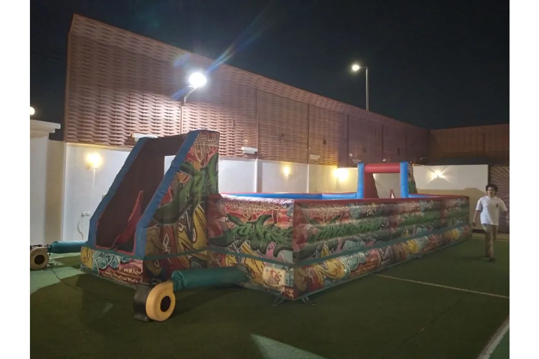 ملعب صابوني بأرضية هوائية يوفر تجربة لعب مليئة بالمرح والإثارة، حيث يجمع بين الانزلاق، القفز الخفيف، والتوازن في أجواء ترفيهية آمنة. الأرضية الهوائية تمنح مرونة إضافية وامتصاصًا للصدمات، مما يزيد من مستوى الأمان والمتعة أثناء اللعب، مع إمكانية استخدامه في الفعاليات والمسابقات الجماعية. مثالي للأيام الترفيهية، الفعاليات الصيفية، الأنشطة الشبابية، والحفلات، ومصنوع من خامات قوية وآمنة تتحمل الاستخدام المتكرر. المقاسات: الارتفاع: 2.5 متر الطول: 8 متر العرض: 4 متر
