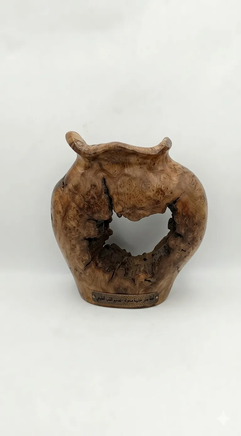"نافذة على التاريخ المنحوت في الخشب: اقتني هذه القطعة الاستثنائية التي تجسد ذروة الإبداع اليدوي. نحن أمام منحوتة درامية وعميقة، حيث تم استغلال كتلة خشبية صلبة ومعتقة (يبدو كأنها خشب محروق أو معالج) ليصبح مسرحاً لنحت معماري مذهل يصور قلاعاً، حصوناً، وجدراناً حجرية غائرة تشعرين وكأنها تروي قصة حضارة منسية.