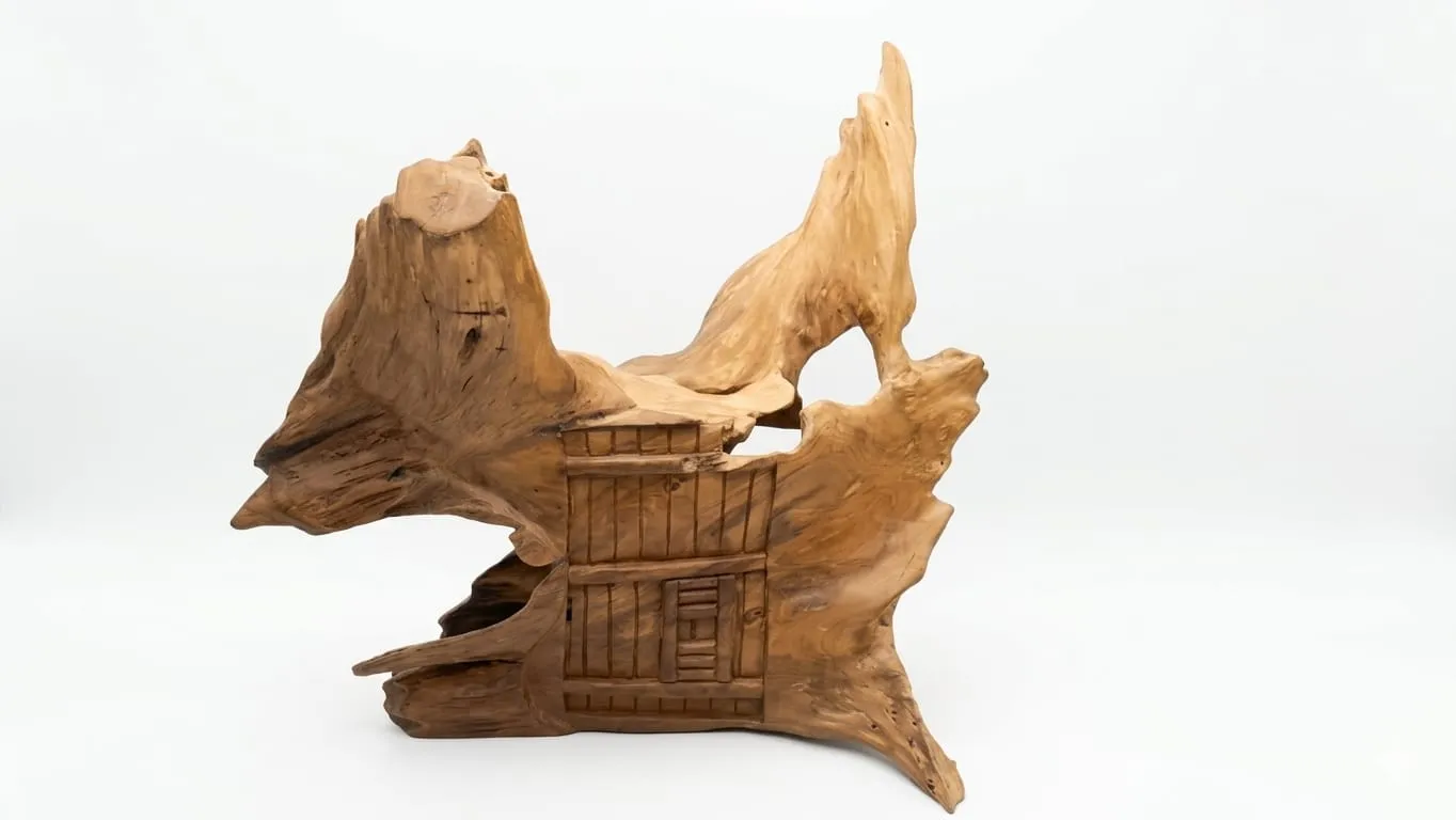 احجز منحوتة "بوابة الحكايات" - جذع طبيعي بنحت معماري يدوي فريد الآن ولا تضيع الوقت في البحث