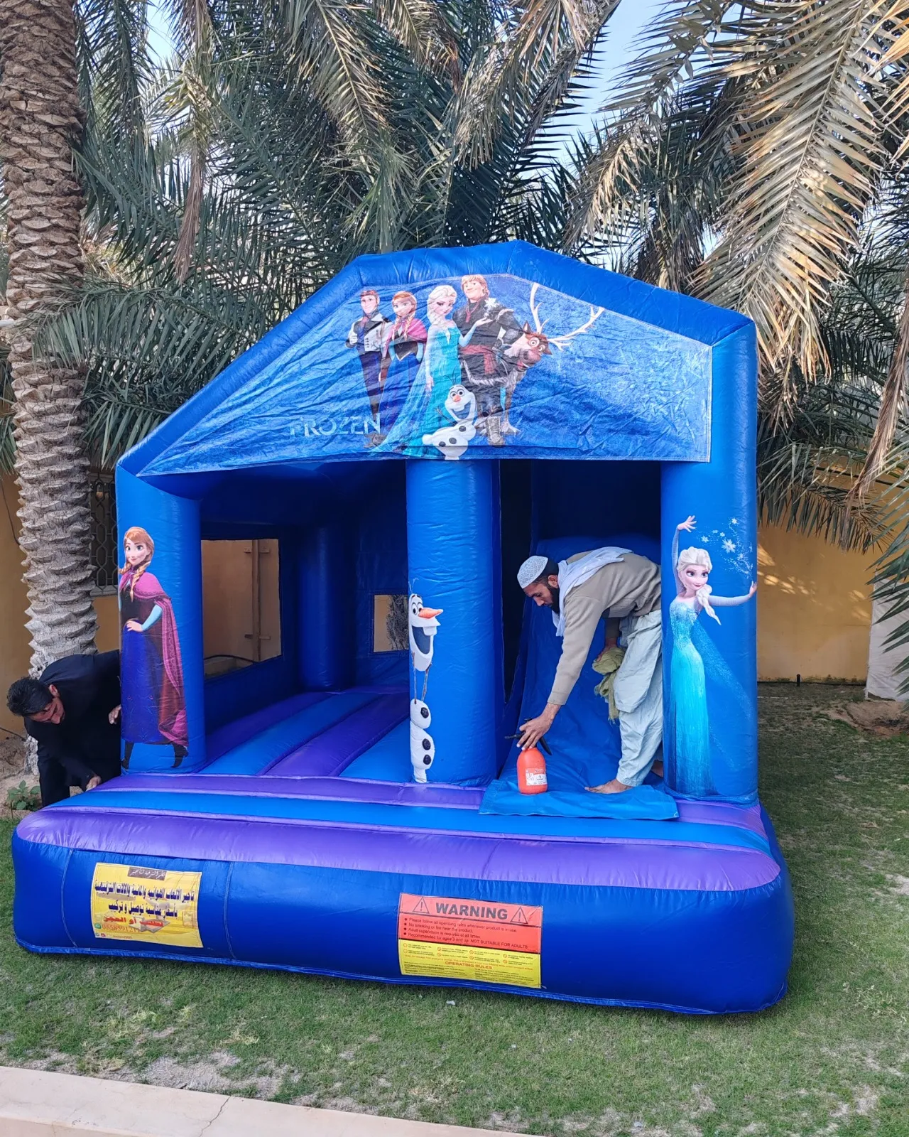 نطاطة وزحليقة فروزن الصغيرة – تصميم ساحر من عالم ديزني للأطفال أضف لمسة من السحر والمرح إلى مناسبتك مع نطاطة وزحليقة فروزن الصغيرة المستوحاة من فيلم ديزني الشهير. بقياسات مناسبة (الطول 4 متر – العرض 3 متر – الارتفاع 3 متر)، تعتبر خيارًا مثاليًا للأطفال في الحفلات والمناسبات الخاصة، حيث تجمع بين القفز والانزلاق في تصميم آمن وجذاب. هذه اللعبة الهوائية تقدم تجربة مرحة ومليئة بالحركة ضمن أجواء من الخيال، مما يجعلها عنصر جذب رئيسي لأي فعالية موجهة للأطفال. ✅ المميزات: تصميم جذاب بشخصيات فروزن المحببة للأطفال دمج بين النطيطه والزحليقة في لعبة واحدة ممتعة مقاسات مناسبة للمساحات الصغيرة والمتوسطة مصنوعة من خامات متينة وآمنة للاستخدام ألوان زاهية تلفت الأنظار وتعزز جو الاحتفال 📍 مثالية للاستخدام في: حفلات أعياد الميلاد والمناسبات العائلية الفعاليات المدرسية ورياض الأطفال المناسبات الترفيهية في المولات أو الحدائق الفعاليات النسائية أو الزوايا المخصصة للأطفال الاستراحات والمزارع الخاصة متاحة الآن للتأجير من خلال منصتنا المختصة في ألعاب الأطفال والفعاليات، مع خدمات التوصيل والتركيب لتجربة متكاملة ومريحة. شروط الحجز على العميل التأكد من أن مساحة الموقع مناسبة لحجم الألعاب المطلوبة. لا يتم تركيب الألعاب على الرمل أو الأسطح غير المستوية، كما لا يتم تركيبها في الأدوار العليا نهائيًا. مسؤولية الإشراف على الأطفال تقع على العميل، ويجب وجود أشخاص بالغين للإشراف طوال فترة الاستخدام. يجب التأكد من توفر مصدر كهرباء 220 فولت في موقع التركيب. يمنع تحريك الألعاب بعد تركيبها إلا عن طريق فريق التركيب. يتم دفع مبلغ تأمين مسترد قدره 200 ريال عن كل لعبة عند استلامها بحالة سليمة. قد يتم تركيب وفك الألعاب من بعد الفجر إلى صلاة المغرب، ويختلف وقت التركيب حسب نوع اللعبة والموقع. أي رسوم إضافيه تفرضها مواقع الفعاليات أو الاستراحات يتحملها العميل بالكامل
